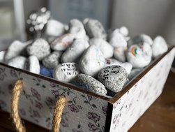 Einer der beiden Steine verbleibt bei der Familie, der andere kommt in ein großes Aufbewahrungsglas auf der Station. Beide werden mit den Initialen der Verstorbenen oder persönlichen Botschaften versehen, eine kleine, aber kraftvolle Geste, die Halt geben kann. „Auch wenn es nur ein kleiner Stein ist, die Angehörigen haben etwas, woran sie sich festhalten können“, erklärt Christine Ackermann, Teamleiterin der Palliativstation.
