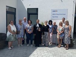 (V. l.) Frau Schilling, Pflegedienstleitung AMEOS Pflege Winterlingen; Frau Hosbach, Wortgottesdienstleiterin kath. Kirche Winterlingen; Herr Maier, Bürgermeister Winterlingen; Frau Eppler, Einrichtungsdirektorin AMEOS Pflege Winterlingen und Meßstetten; Herr Nestle, Pfarrer Evangelische Kirche Winterlingen; Frau Nestle; Frau Strasser Netzwerk Demenz und Demenzparcour Zollernalbkreis; Frau Adler Merbach, Netzwerk Demenz und Demenz Parcour Zollernalbkreis; Frau Fink Bewohnerverwaltung AMEOS Pflege Winterlingen und Meßstetten; Herr Wegner Stellv. Pflegedienstleitung AMEOS Pflege Meßstetten; Frau Duffner Pflegefachkraft AMEOS Pflege Meßstetten