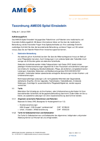 Taxordnung AMEOS Spital Einsiedeln Gültig ab 1. Januar 2026 Aufklärungspflicht Das AMEOS Spital Einsiedeln hat gegenüber Patientinnen und Patienten eine medizinische und finanzielle…